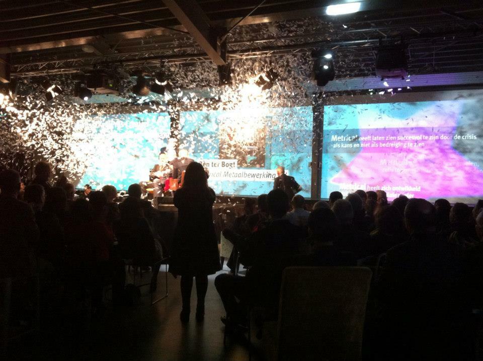 Creatieve omlijsting Prijs Creatief Ondernemerschap Brabant 2012. Interactieve projectie met live poppin dansers. Andrée Tankink bedrijfsadviseur Kamer van Koophandel "De uitreiking van de Prijs Creatief Ondernemerschap is dit jaar in een geheel nieuwe jas gestoken dankzij de spetterende presentatie van Imagination Lab & Tobias Ontwerpen. Onder grote tijdsdruk, binnen budget een vernieuwde presentatie realiseren is een prestatie van formaat. Marnix van de Vijver & Tobias Baeten wisten onze zakelijke wensen creatief te vertalen in toepassing van technieken, dans en geluid. Een absolute aanrader. Dank voor de fijne samenwerking!" Client: Kamer van Koophandel Zuidwest-Nederland | Concept & motion graphic design: Imagination Lab & Tobias Ontwerpen | Dance: Doree Hiphoplady & Colette le Clercq | 3d animation: Houben media rental | Stage, light & projection: PEP events | Fragrance: Inscentives
