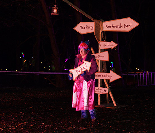 Warande by Night is een avondrun die helemaal in het teken staat van licht, muziek en beleving. De opening van Warande by Night is spectaculair te noemen met een schitterende licht en geluid show. Je loopt 2 tot 5 kilometer over een uniek verlicht parcours met ludieke pitstops. De bijzondere pitstops in het thema van Alice in Wonderland kwamen uit onze koker.