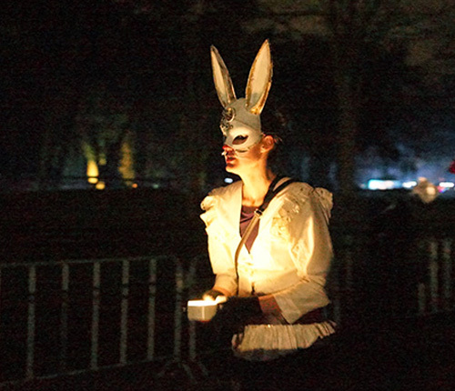 De lopers van Warande by Night komen terecht in een droom. Een tea-party met de Gekke Hoedenmaker en Maartse Haas, van de wijs worden gebracht door de Kolderkat, een kaartje leggen bij de Blauwe Rups, een heuse hartenstraat vol met kaarten, en niet te vergeten het Witte Konijn die tegen de stroom inloopt en roept dat je te laat bent. Dat we snel kunnen schakelen is reeds bekend, dit project had een productietijd van slechts 2 weken, in samenwerking met Curieus.