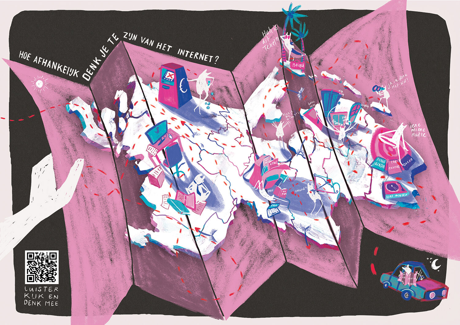 Haar doel is niet om je te vertellen hoe het moet, maar wat de mogelijkheden en perspectieven zijn binnen het leven. Haar talent is om psychologisch abstracte onderwerpen om te zettenin luchtige werken die je raken, laten lachen en je aan het denken zetten. Hoe iedereen zijn eigen belevenis, struggles en dromen heeft blijft haar bezig houden.